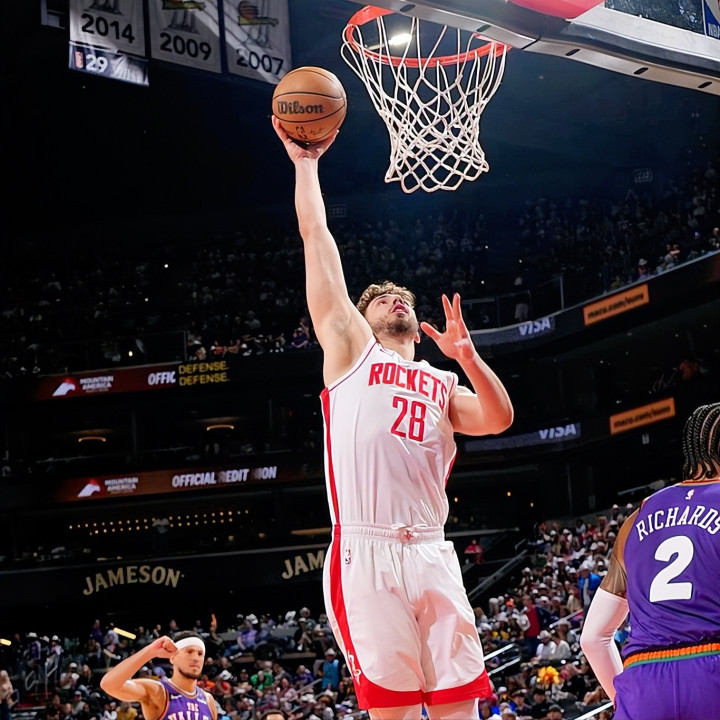 先把两队的进攻底子说清楚。火箭现在进攻效率排联盟第一,听着特唬人,但这第一不是靠三分雨或者快攻打出来的,全是靠球员往篮下冲、抢进攻篮板拼出来的二次进攻。太阳就不一样了,他们进攻效率117.5排联盟第八,比火箭差不少,但人家的效率来得更“轻松”——太阳每场只打100.9个回合,这个回合数在联盟排第19,节奏不算快,能有这进攻效率,全靠一手精准投篮。